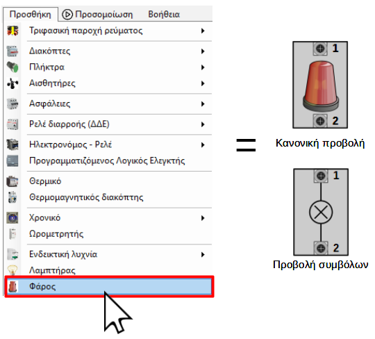 Για να προσθέσετε ένα φάρο μπορείτε να χρησιμοποιήσετε το μένου "Προσθήκη" ή την εργαλειοθήκη, όπως φαίνεται στις παρακάτω εικόνες: