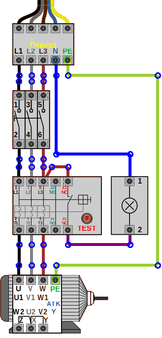 Ο φάρος ανάβει όταν τροφοδοτηθούν με κατάλληλη τάση τα άκρα 1-2.