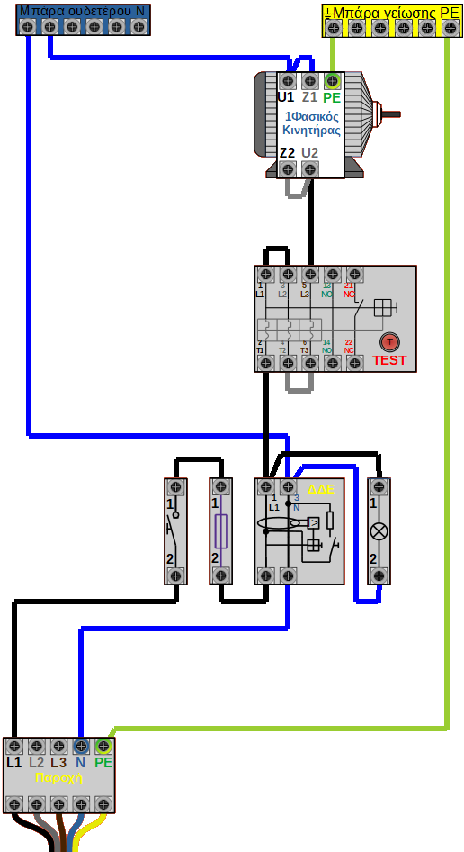Παράδειγμα κυκλώματος αλλαγή φοράς περιστροφής μονοφασικού κινητήρα