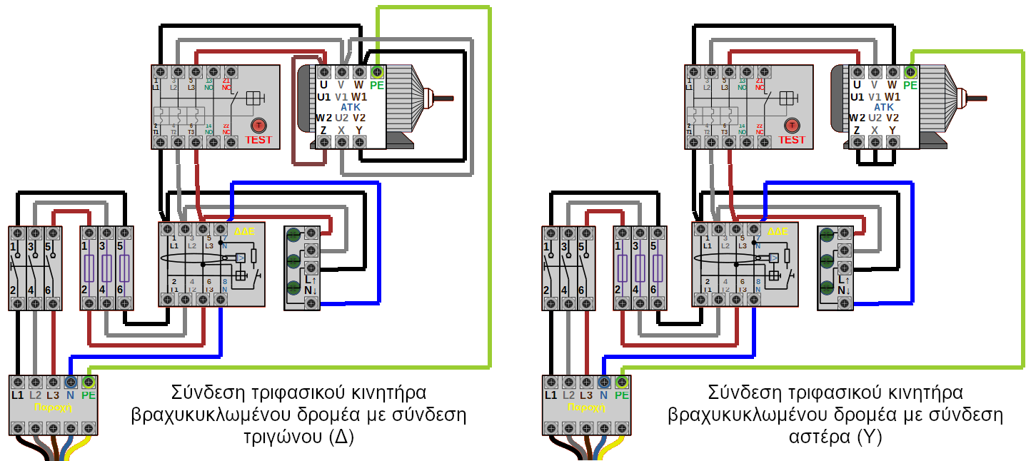 Κύκλωμα κινητήρα βραχυκυκλωμένου δρομέα σε αστέρα και τρίγωνο