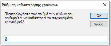 Στη συνέχεια, θα εμφανιστεί ένα παράθυρο με τίτλο "Ρύμιση καθυστέρησης χρονικού". Θα πρέπει να πληκτρολογήσετε την νέα ρύθμιση καθυστερήσης και να πιέσετε το πλήκτρο "ΟΚ", όπως φαίνεται στην παρακάτω εικόνα: