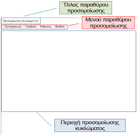 Μέρη παραθύρου προσομοίωσης