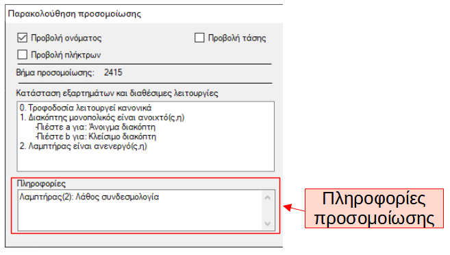 Μορφή παραθύρου 'Παρακολούθηση προσομοίωσης'