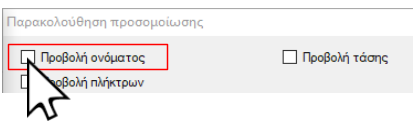 Παράδειγμα: εμφάνιση και εξαφάνιση κωδικής ονομασίας